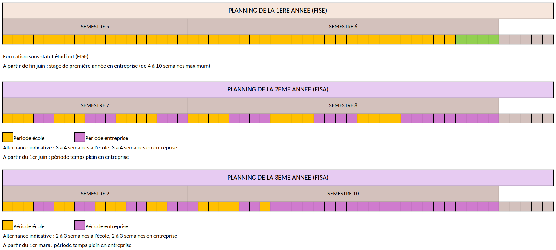 - la 1ère année (FISE) à temps plein à l’école pour acquérir des fondamentaux scientifiques et techniques,